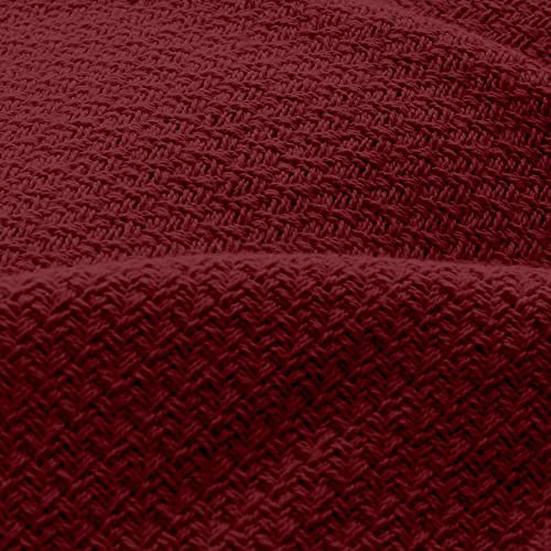 Our elegant organic blanket is the perfect addition to any bedroom. With its single-knit pattern and textured burgundy color, this blanket adds a touch of sophistication and warmth to your bed. Measuring 90″x90″, our blanket is large enough for you to snuggle under comfortably, yet not too bulky or heavy.