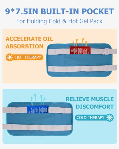 Designed for optimal comfort and convenience, this pack wrap features a fully adjustable elastic strap design that fits perfectly on most body types and sizes. Whether you are petite or plus-size, this wrap will provide a snug and comfortable fit. And the best part? The rectangular shape of the castor oil packs allows you to use them on your arms, legs, or any body part you desire, with the ability to adjust the looseness to your liking.