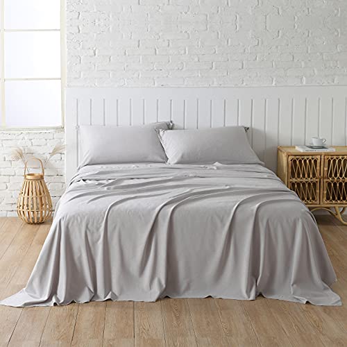 Bare Home 100% Organic Cotton Jersey Sheet Set, Ultra Soft, 100% Cotton – Sheet Set & Pillowcases – Deep Pocket Bed Sheets (Queen, Grey)