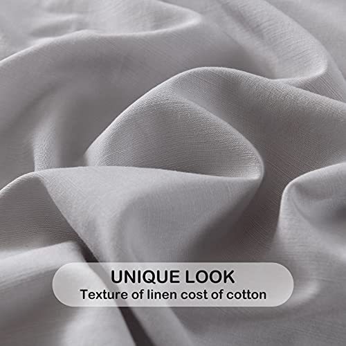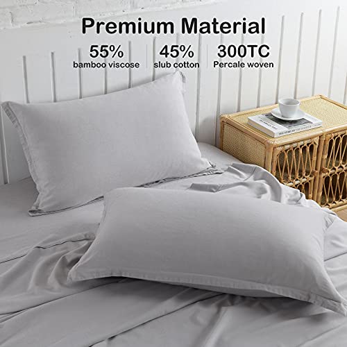 Light Grey Linen-Textured 55% Viscose from Bamboo 45% Cotton Sheets Set Twin Size, Soft Cool & Breathable Sheets for Hot Sleepers, Durable Natural Organic Bed Sheets 15″ Deep Pocket – 3 Piece